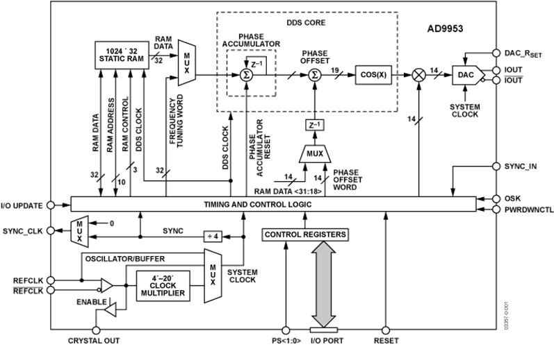 AD9910是一款直接數字頻率合成器(DDS),具有集成的14位DAC,支持高達1 GSPS的采樣速率。AD9910應用好的專有DDS方法,可不在不惜犧牲能的原因下顯著減輕功率。DDS / DAC組合名字導致號碼可編寫程序低頻養成內容輸出組成器,要在高達mg400 MHz的頻繁 下有頻繁 捷變的正弦交流電波形參數。