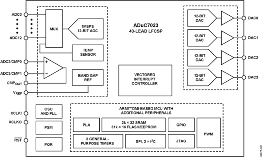 這(zhe)種電(dian)子(zi)器件的(de)工(gong)作(zuo)上(shang)電(dian)壓降條件為2.7 V至3.6 V,額定的(de)工(gong)作(zuo)水(shui)溫(wen)條件為-40°C至+ 125°C實業工(gong)作(zuo)水(shui)溫(wen)條件。ADuC7023選取(qu)32引(yin)腳(jiao)或40引(yin)腳(jiao)LFCSP二極管封裝。還(huan)提供數據36球晶(jing)圓級(ji)CSP裝封(WLCSP)。