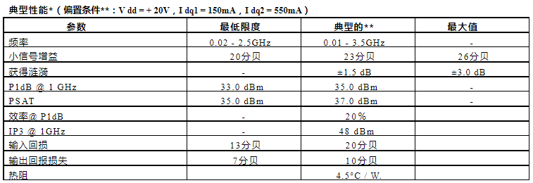 AM003536WM-FM-R是AM003536WM-BM-R安裝(zhuang)在銅制法蘭(lan)支架上(shang),用于擰(ning)緊(jin)金屬散熱(re)器(qi)。兩個部分都是符合RoHS標準。它的(de)優點其中包(bao)括帶寬(kuan)從(cong)10MHz到3.5GHz;高輸(shu)出功率P1dB=36dBm;高增(zeng)益(yi)為23dB;輸(shu)入(ru)/輸(shu)出匹配50歐姆;而它的(de)應用一般(ban)在軟件無線電(dian)、儀表、獲得電(dian)阻等