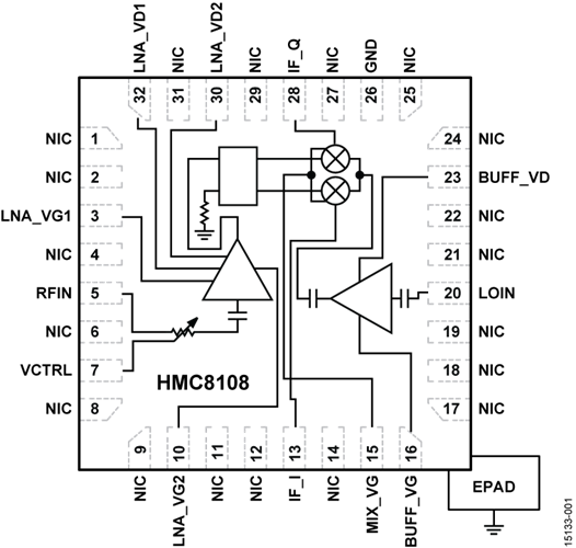 HMC8108采用低噪聲放大器,后接由有源LO緩沖放大器驅動的鏡像抑制混頻器。該鏡像抑制混頻器使得低噪聲放大器之后無需使用濾波器,并可消除鏡像頻率下的熱噪聲。它具有I/Q混頻器輸出,所需外部90°混合型器件用于選擇所需邊帶。立維創展 ADI現貨黃(huang)金HMC8108為混(hun)合型(xing)(xing)鏡像抑(yi)制(zhi)混(hun)頻(pin)器(qi)、下變頻(pin)器(qi)組件的小(xiao)型(xing)(xing)替(ti)代器(qi)件,可(ke)以使(shi)用表貼制(zhi)造技術。