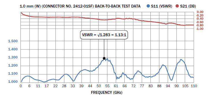 非常低的駐(zhu)波(bo)比DC to 110 GHz: 1.25:1 Max