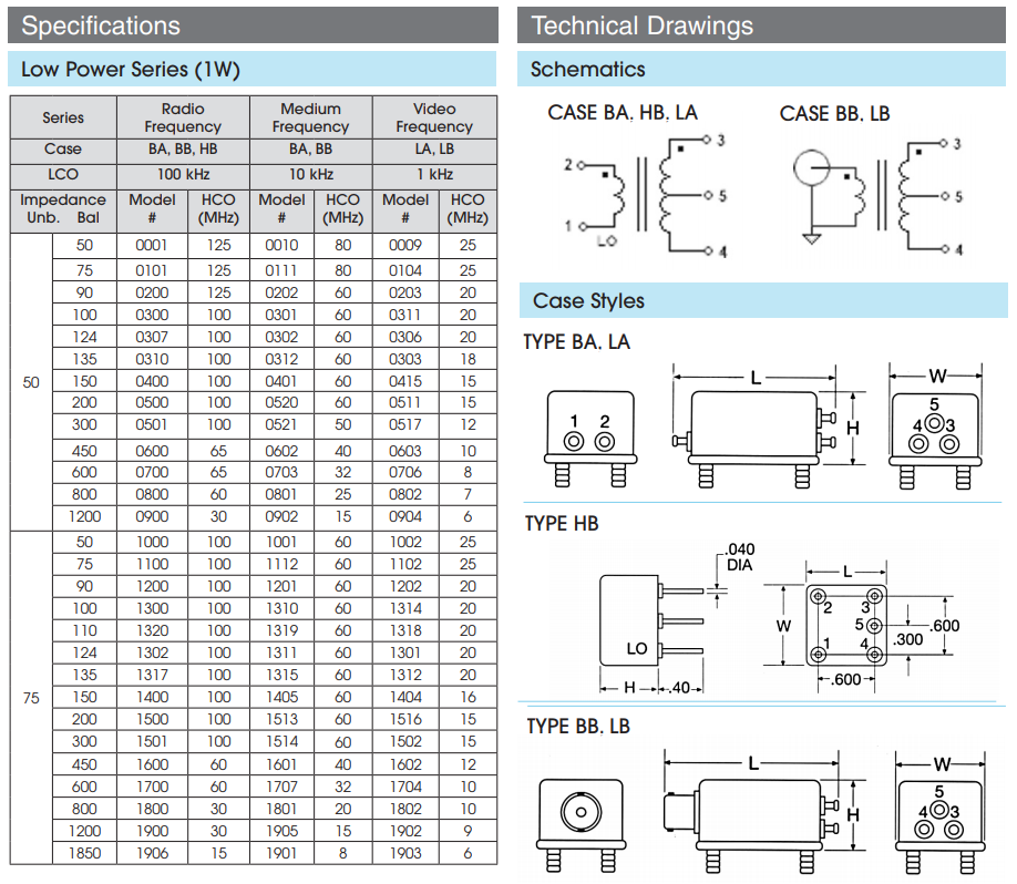 越多的North Hills巴倫低壓變壓器數據與參數指標: