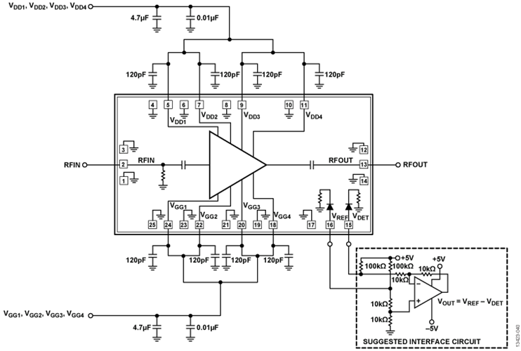 HMC7543就是一款結合式E頻譜的砷化鎵(GaAs)、假晶(pHEMT)、單電原IC芯片微波微波通信結合用電線路(MMIC)中等水平高效率放縮器,結合溫來補償型片上高效率檢波器,運轉頻次比率為71 GHz至76 GHz。 HMC7543具備21.5 dB增加收益、25 dBm的所在高效率(1 dB縮小)和26.5 dBm飽和點的所在高效率(20%高效率額外添加高效率(PAE)),選取4 V電原供電局。 HMC7543具備很棒的波形度并根據E頻段微波通信和高電容量wlan反程wlan電設備實行調優。 放縮器搭配和高增加收益使其為無線在之前接下來1級的信號放縮的絕好選取。 每個數值均采取50 Ω檢驗夾具設計中的電原IC芯片添加,按照各端口號上總寬為3 mil、厚薄為0.5 mil、厚度為7 mil的焊線進行連接。